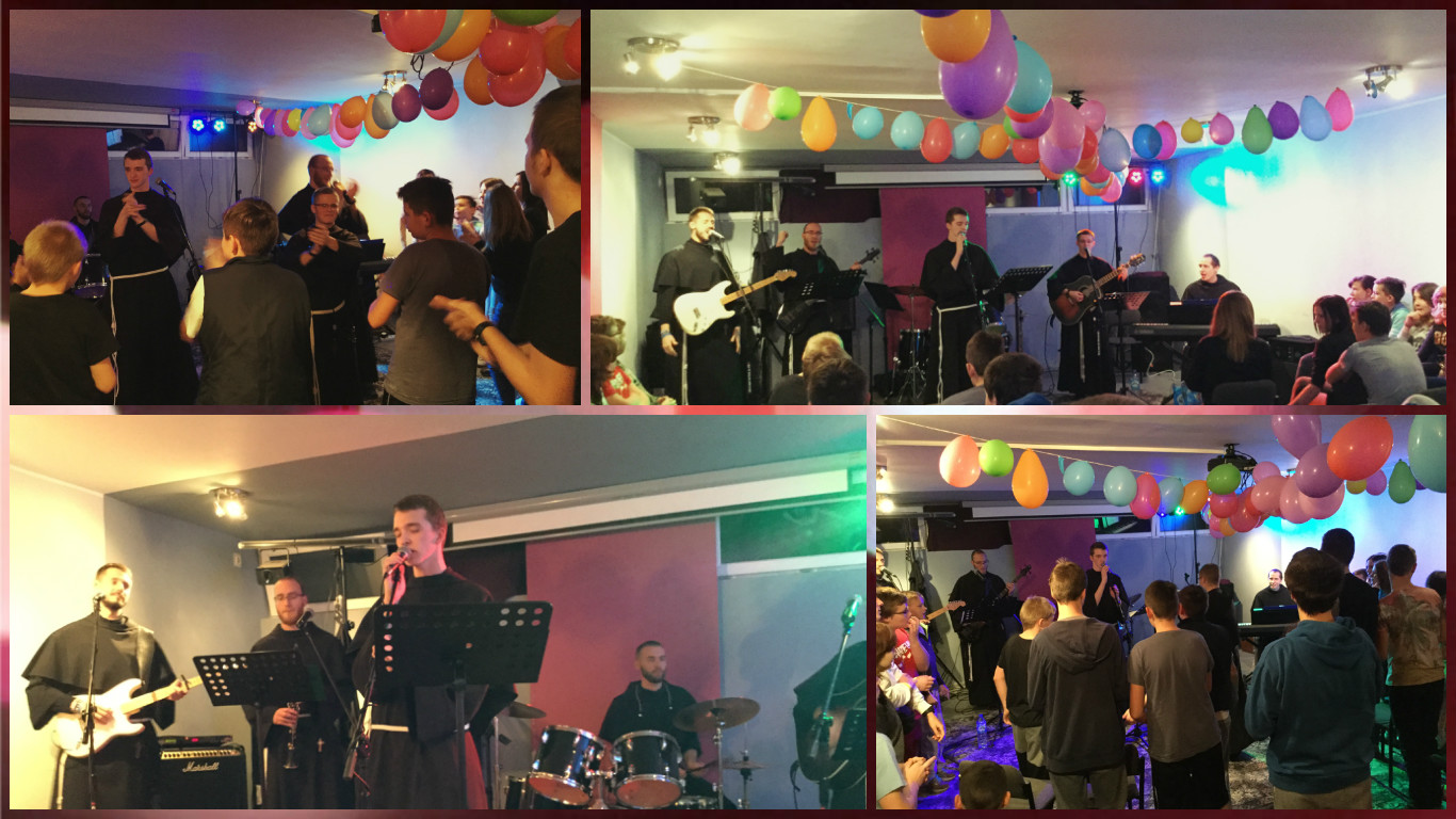 Nasz zespół w czwartek, 17 listopada, zagrał koncert w Młodzieżowym Ośrodku Socjoterapii nr 2 w Łodzi.Zostaliśmy przyjęci w kameralnej sali, gdzie zebrali się wszyscy wychowankowie ośrodka. Rozpoczęliśmy od kawałka Jezu ufam Tobie, a pozostały repertuar miał charakter głównie rockowy dzięki takim utworom jak: Adpotowany, Nabieraj mocy w łasce czy Lwów niewyszczotkowane grzywy. Nie zabrakło także piosenek animacyjnych, w które młodzież włączyła się bardzo aktywnie. Ten występ był też pierwszym dla nowego wokalisty – br. Marcina Owczarka z pierwszego roku oraz dla br. Pawła w roli basisty!
