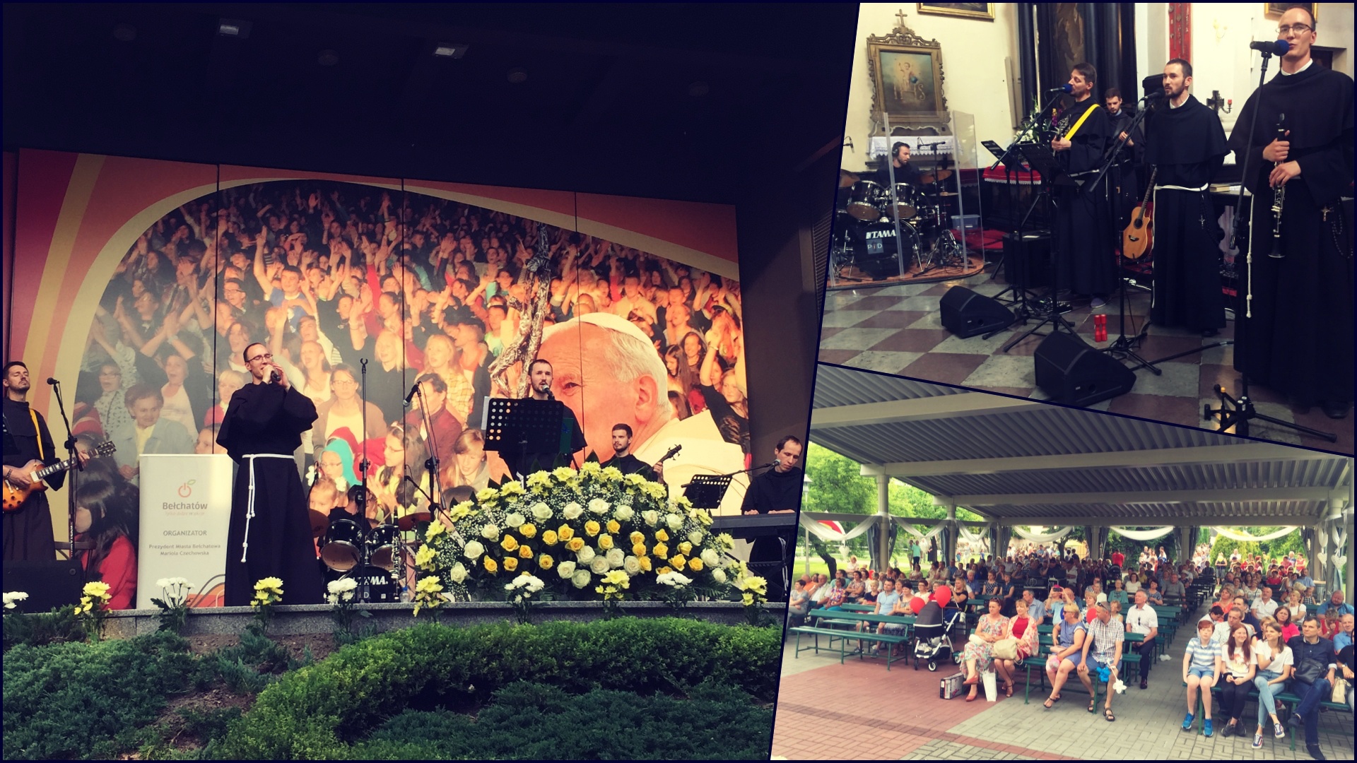 Do Bełchatowa udaliśmy się, aby zagrać koncert w ramach Bełchatowskich Dni Rodziny oraz Dnia Patrona Bełchatowa św. Jana Pawła II. Zanim jednak znaleźliśmy się na scenie mieliśmy okazję wysłuchać koncertu laureatów Festiwalu Piosenki Papieskiej i Religijnej SANTO SUBITO 2019. Wśród jury tego konkursu znalazł się także nasz współbrat Maksymilian, który miała także zaszczyt ogłosić zwycięzców.