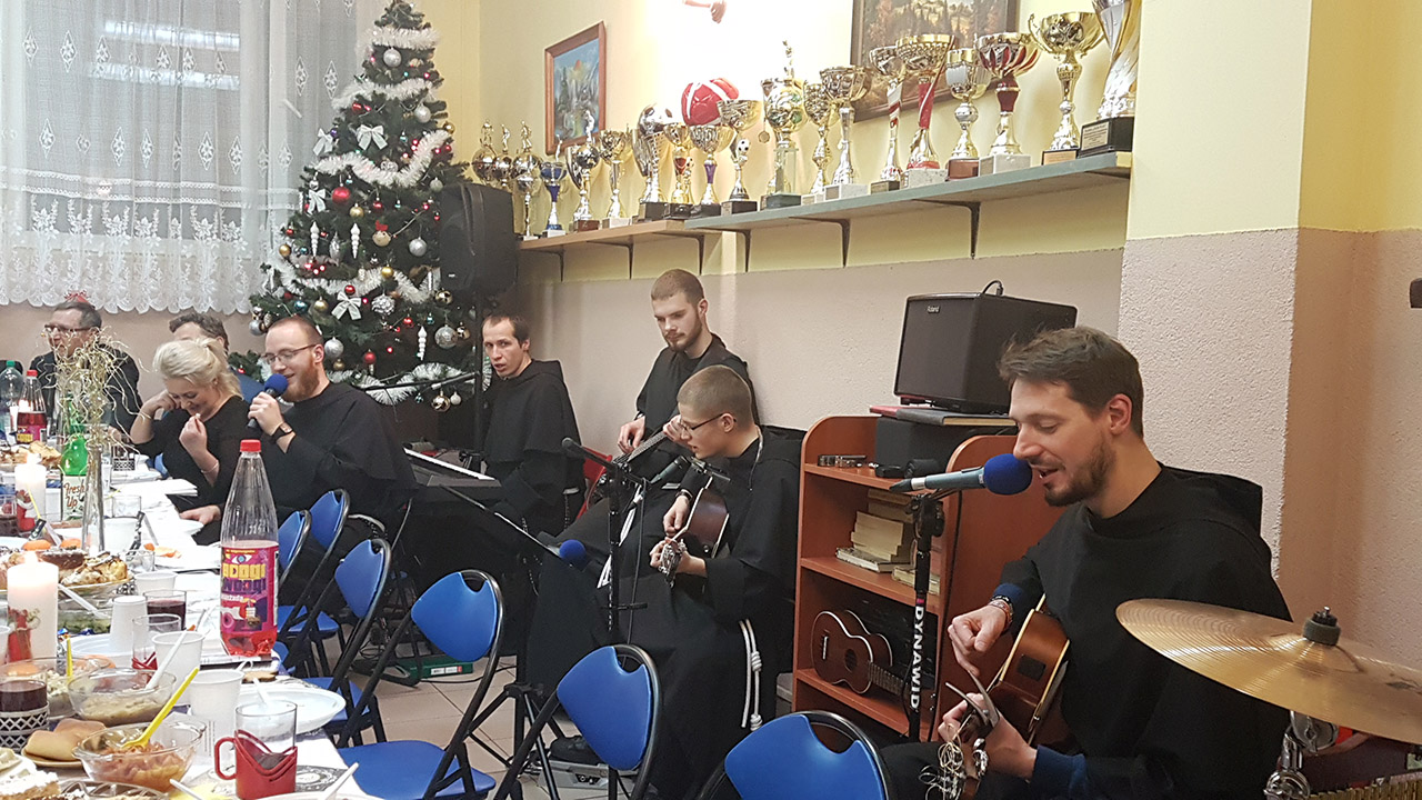 Po krótkim wprowadzeniu klubowicze zaprezentowali swoje wiersze, swoje autorskie utwory śpiewał dla nas również pan Henryk. My natomiast w przerwach oraz podczas składania życzeń i wigilijnej wieczerzy graliśmy kolędy, śpiewając wspólnie ze wszystkimi.