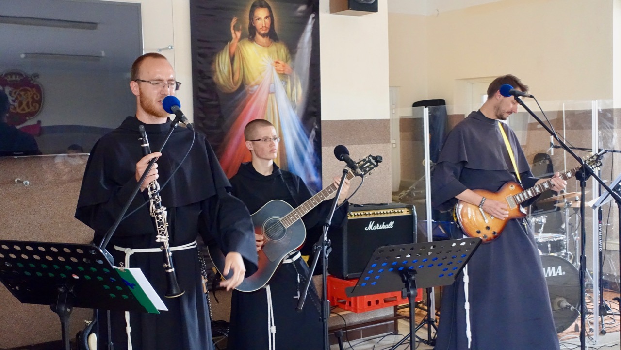 Tym razem nasz zespół przekroczył granicę! Udaliśmy się do urokliwego Whitestock w stanie Underwood.Tam w sobotę, 23 czerwca zagraliśmy dla chłopaków w zakładzie poprawczym, a następnego dnia, w niedzielę – jak to zwykle bywa – graliśmy na mszach świętych. Tym razem była to Holy Spirit Parish czyli parafia Ducha Świętego. Zachęcamy do obejrzenia zdjęć poniżej. Miejscowi przyjęli nas bardzo ciepło. W ten sposób zakończyliśmy akademicki rok koncertowy. Wieczorem wróciliśmy do Łodzi, by kibicować naszym na mundialu. Musieliśmy szybko ochłonąć po porażce biało-czerwonych, gdyż następnego dnia było uroczyste zakończenie roku akademickiego, a dla nas oznaczało to także rozpoczęcie letniego obozu warsztatowego przed nagraniami… ale o tym w następnej relacji. Pax!